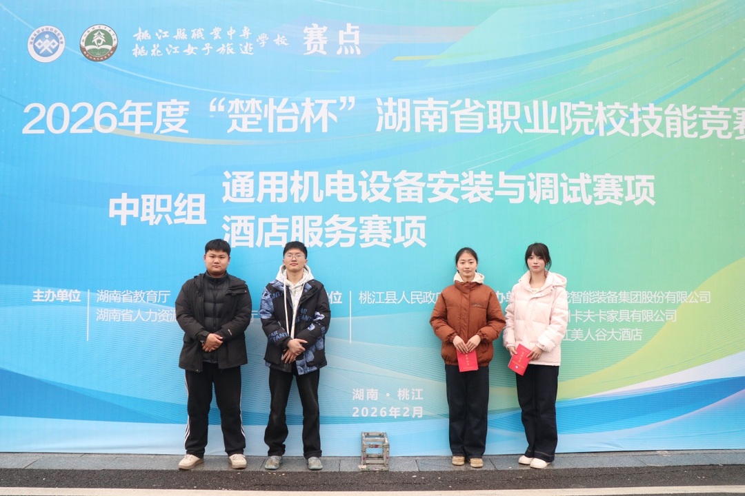 2月3日至5日,2026年“楚怡杯”湖南省职业院校技能竞赛桃江县职业中专学校赛点赛事成功举行。来自全省的92名技能精英齐聚桃花江畔,在“通用机电设备安装与调试”与“酒店服务”两大省级赛项中展开了为期三天的激烈角逐。