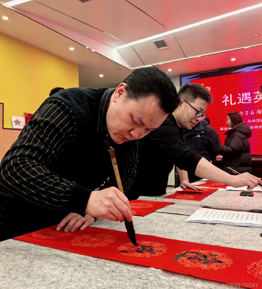 此次活动由共青团邵阳市委、邵阳市委人才工作领导小组办公室主办,邵阳市政协共青团青联界别委员工作室、邵阳市青少年活动中心、邵阳市青年书法家协会承办,邀请全市青年干部职工、创业青年、青年志愿者、市直单位干部职工、银发人才及广大市民群众参与,重点邀约了2025年度新引进的高层次人才、优秀青年企业家、青年科技工作者代表,以新春为契机,向扎根邵阳、奉献邵阳的青年英才送上诚挚问候与美好祝福。