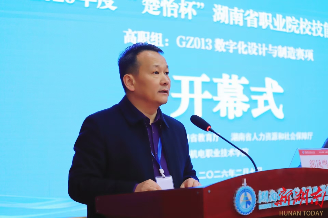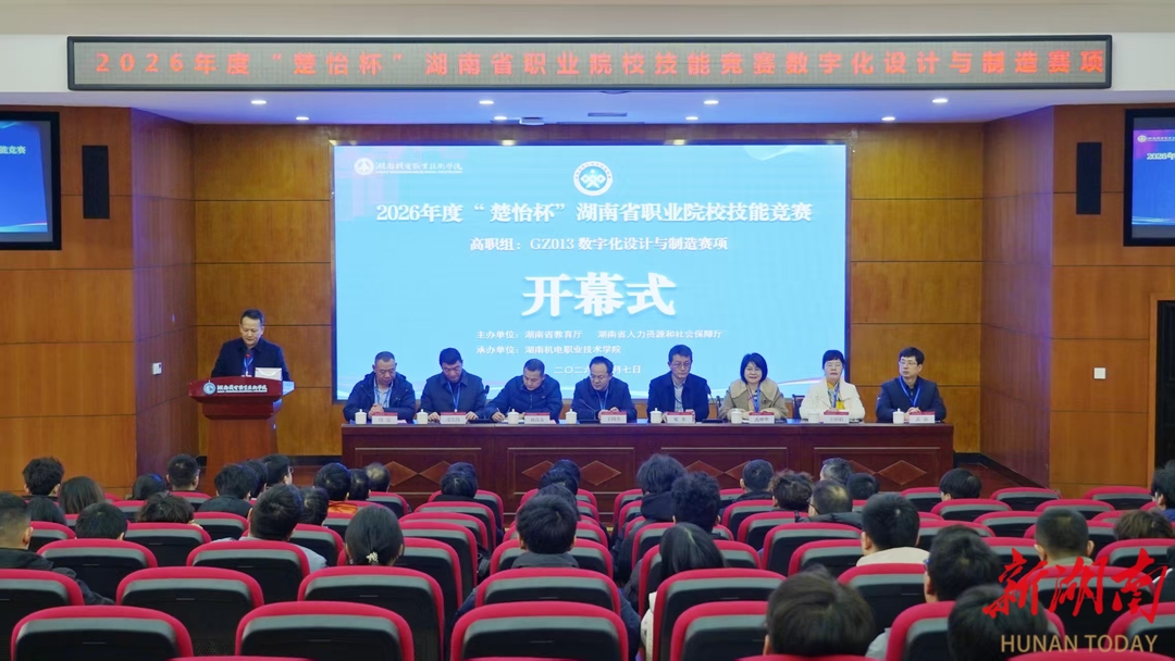 湖南日报2月7日讯(通讯员 廖玉婷)2月7日,2026年度“楚怡杯”湖南省职业院校技能竞赛高职组数字化设计与制造赛项开幕式在湖南机电职业技术学院举行。来自全省38所职业院校的参赛选手、领队、指导教师齐聚一堂,共赴这场技能与青春的盛会。