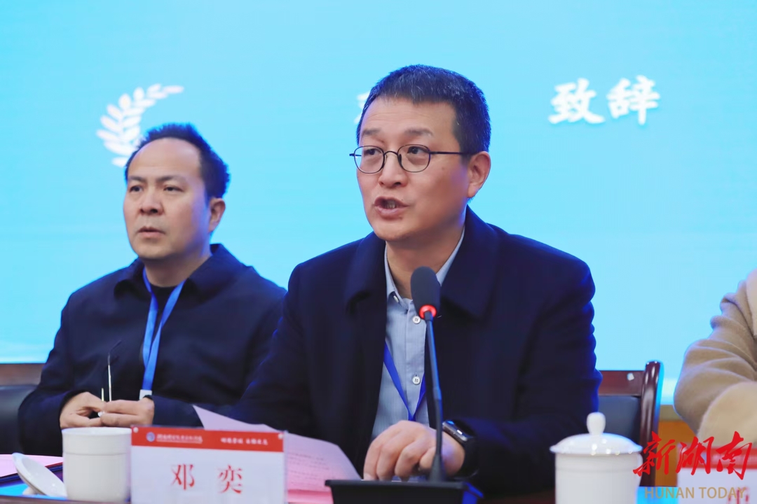 湖南机电职院校长邓奕致欢迎辞。他代表学校全体师生向各位领导、专家、兄弟院校师生表示热烈欢迎,并简要介绍了机电职院作为首批国家示范性职教集团理事长单位、湖南省楚怡高水平高职学校A档建设单位的发展概况。他强调,数字化设计与制造是先进制造业的核心领域,本次竞赛是推动职业教育高质量发展、服务湖南打造国家重要先进制造业高地的重要举措。学校将全力以赴,做好赛事组织与服务保障,确保比赛公平、公正、温馨、有序。
