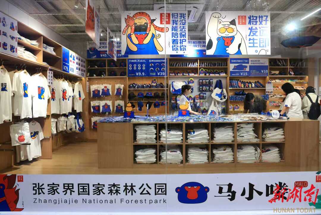 游客的青睐,源于文创IP的精心打磨。“马小喽”是武陵源官方文创品牌“界里有礼”打造的原创IP,原型取自景区猕猴,由本土团队耗时半年打磨,斩获2025年湖南省文旅商品大赛铜奖,衍生出600余款文创产品。“以往文创多是同质化钥匙扣、明信片,附加值低。”设计师李毅介绍,团队深挖“山水+非遗”资源,将土家文化元素融入IP设计,给每款产品标注版权编码,破解同质化难题。