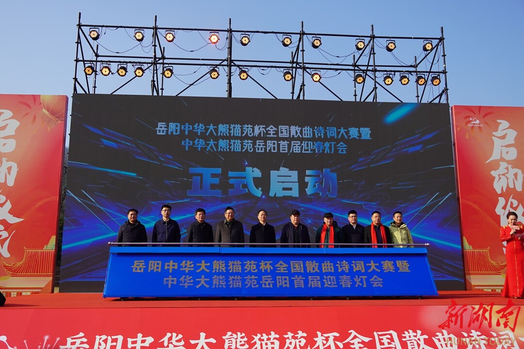 湖南日报·新湖南客户端2月8日讯(记者 杜立 通讯员 李立瀚 )今天,“岳阳·中华大熊猫苑杯”全国散曲诗词大赛暨“中华大熊猫苑·岳阳首届迎春灯会”在南湖新区拉开帷幕。岳阳市人大常委会副主任、党组成员王文华宣布活动正式启动,岳阳市政协副主席、党组成员李运帷讲话,中华诗词学会书记、副会长张存寿,以及来自全国的文旅界嘉宾、散曲诗词爱好者共同见证。