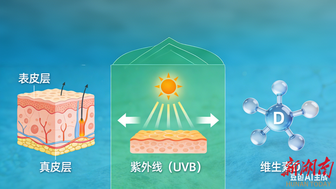 皮肤经紫外线(UVB)照射可合成维生素D,这是人体90%的维生素D(仅10%来自食物),而维生素D是促进钙吸收的“关键帮手”,能有效预防骨质疏松,不管是儿童骨骼发育、还是中老年人骨骼养护,都是天然且有效的途径。