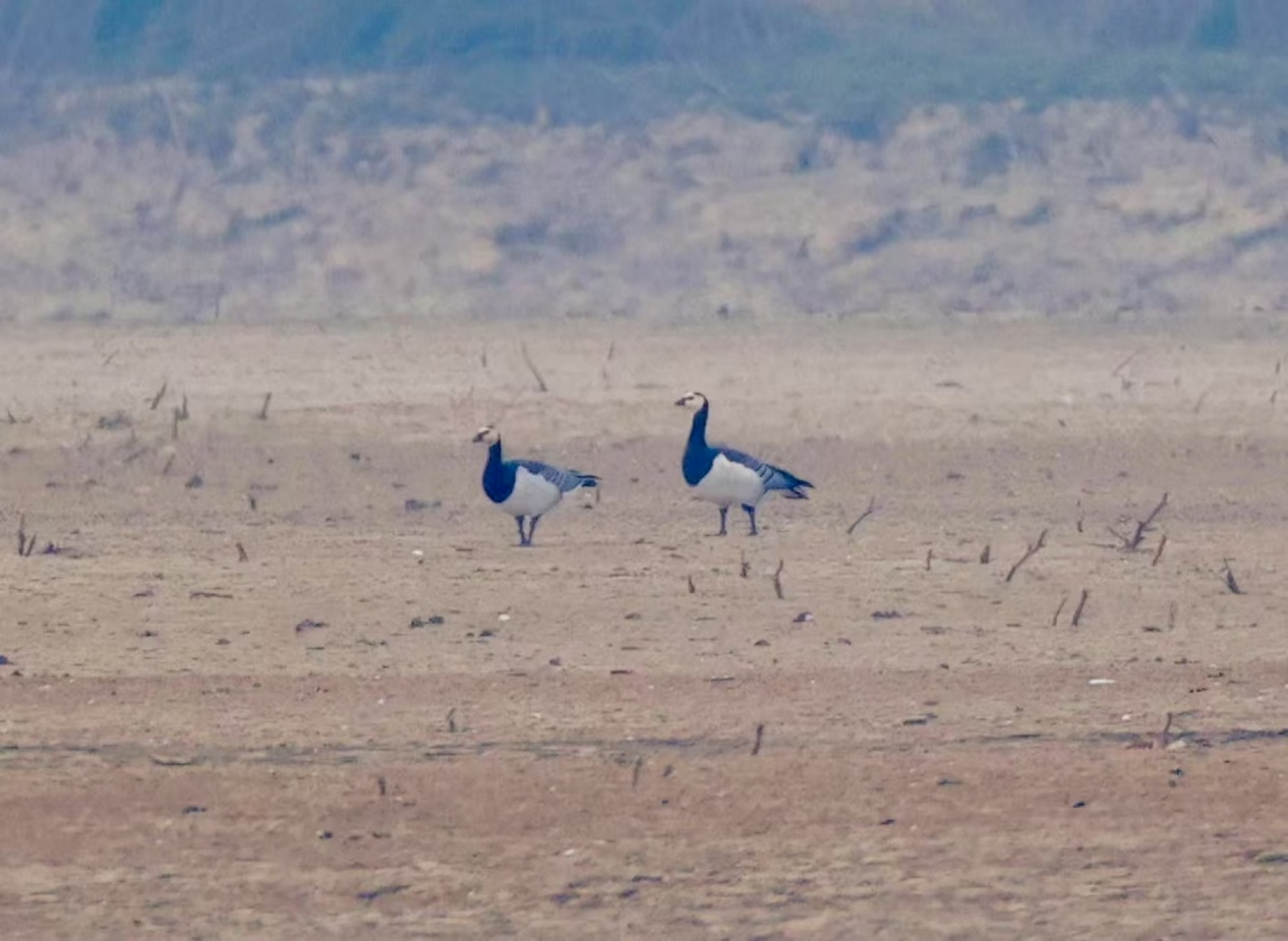 据了解,白颊黑雁主要栖息于欧洲沿海地区,常规迁徙路线为欧洲—大西洋—北美洲,此次现身的两只个体疑似迁徙途中偏离路线的迷鸟,为横岭湖保护区鸟类名录再添新成员。