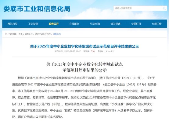 悦易通产品入选娄底市2025年度中小企业数字化转型高质量“小快轻准”数字化产品。