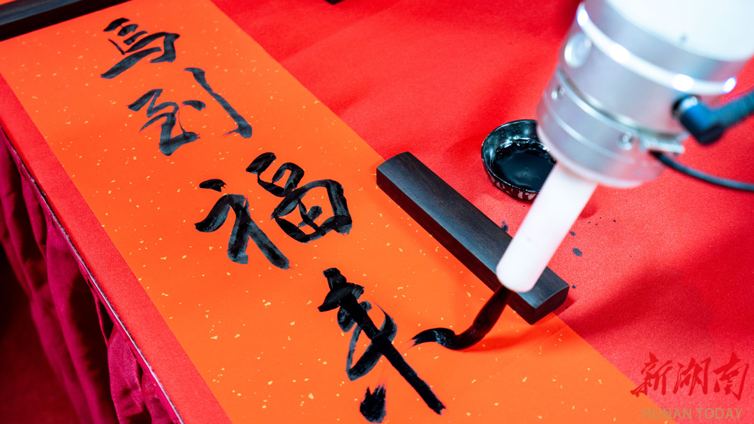 现场互动体验同样吸睛。智能书法机器人现场演示毛笔书写,数字化“写福机”则提供便捷的定制服务,市民可现场打印带有个人印记的专属“福”字。“传统+科技”的融合互动,让市民在领取祝福的同时,也亲身参与,把这份“新潮”年味带回家。