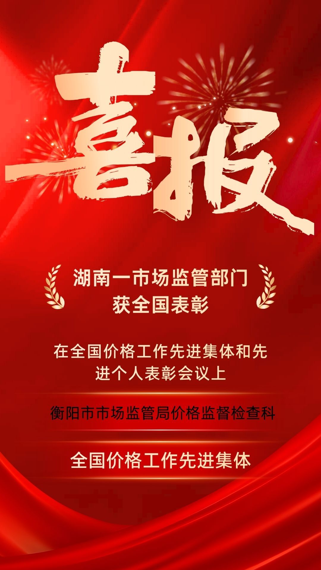 湖南日报·新湖南客户端2月9日讯(全媒体记者 李成辉)近日,国家发展改革委、国家市场监管总局在北京召开全国价格工作先进集体和先进个人表彰会议,对50个先进集体和50名先进个人予以表彰。我省两个单位、一名个人获表彰,其中衡阳市市场监管局价格监督检查科荣获“全国价格工作先进集体”称号。