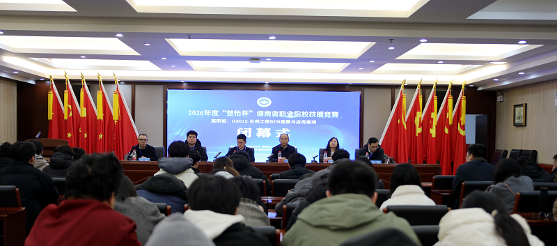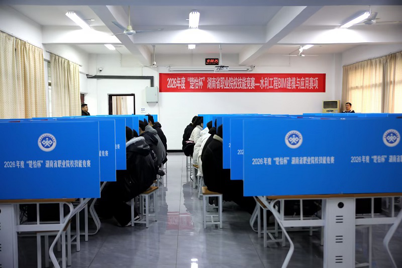 2月5日,2026年度“楚怡杯”湖南省职业院校技能竞赛“高职组水利工程BIM建模与应用”赛项在湖南水利水电职业技术学院圆满收官。为期2天的赛事中,来自全省19所职业院校的48支代表队、144名参赛选手同台竞技、切磋技艺,以精湛技能诠释工匠精神,以青春担当书写职教风采。