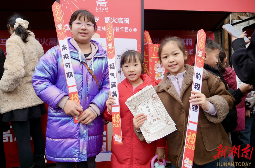 更有意思的是“高椅银票”。印着马年元素的银票,成了逛村的“快乐通关卡”:兑换可消费,游玩能赚取,凭票享折扣、换美食、兑文创,还能体验“马上暴富”的快乐。“兑了12万银票,玩游戏又赢了不少,今天我就是古村大富翁!”当地小游客唐智坤举着厚厚一沓银票,笑得满脸灿烂。