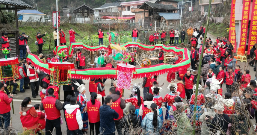 城步罗家水村赏龙灯、品刨汤年俗活动。