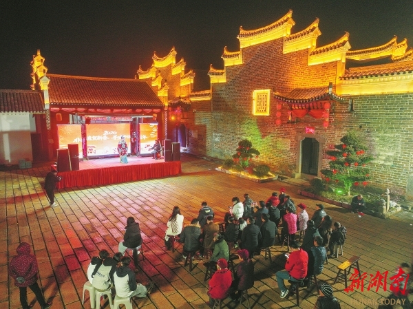 春节前夕,常宁市三角塘镇双湾村刘家大院,村民在观看常宁马灯戏。