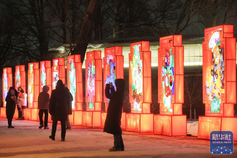2月15日晚,10组中国四川自贡花灯亮相俄罗斯圣彼得堡涅瓦河畔。