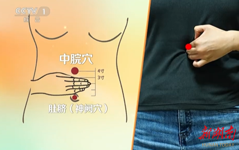 以肚脐作为标志物,向上大概四寸的地方(约五个手指宽),就是中脘穴。