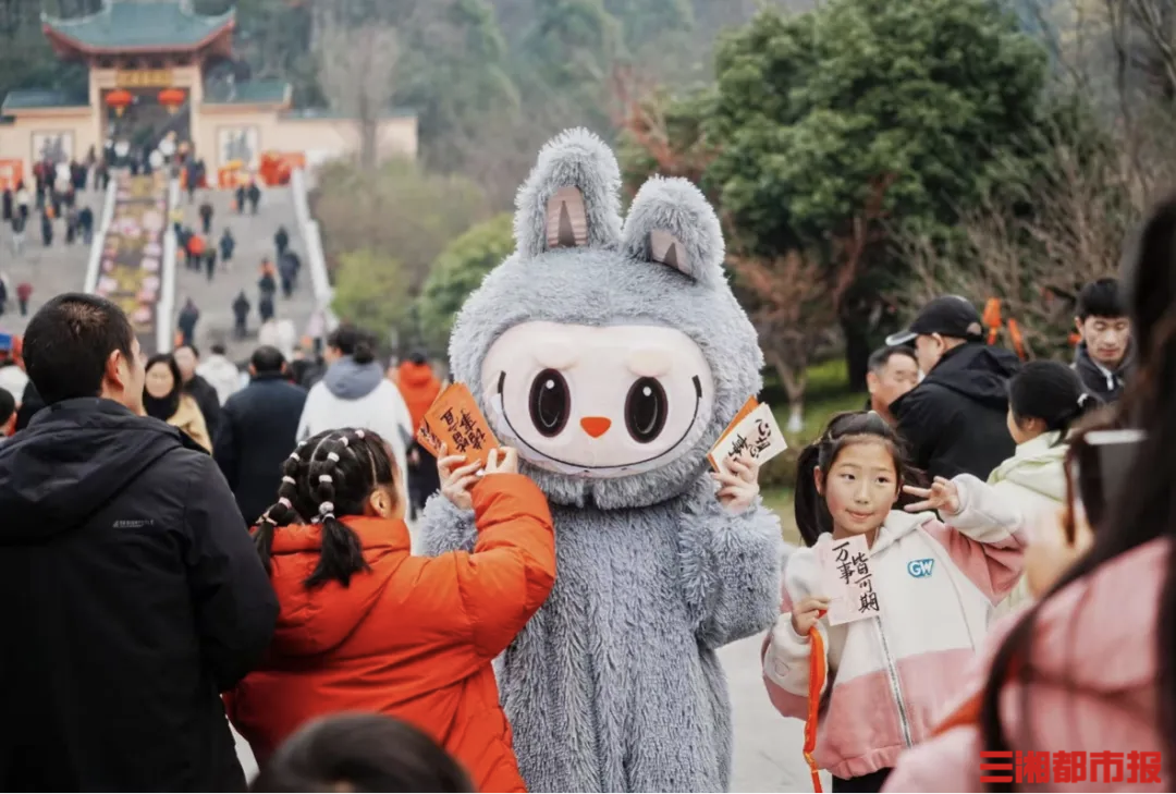 景区内沉浸式互动点位遍布各处,“步步生莲”区域里,财神、文曲星扮演者与游客趣味问答,送出新春好礼;呆萌玩偶巡游打卡,为小朋友送上惊喜;“暴富上上签”“你我皆是黑马”等马年主题打卡点,红金装饰与山间美景相融,成为游客拍照打卡的热门去处。正月初五至元宵节,“马到成功”幸运转盘、祈福打卡等活动持续开放,让游客在游玩中收获马年好运。