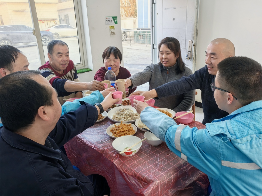 起初李师傅还有些拘谨,许经理往他手里塞了一把擀面杖:“聚在一起就是缘分,今天咱们就是一家人!”几句话暖心,一屋子热闹。不一会儿,李师傅便放下了拘束,一边包饺子,一边和大家唠起家常,说起家中两个盼他回家的孩子,语气里满是温柔。