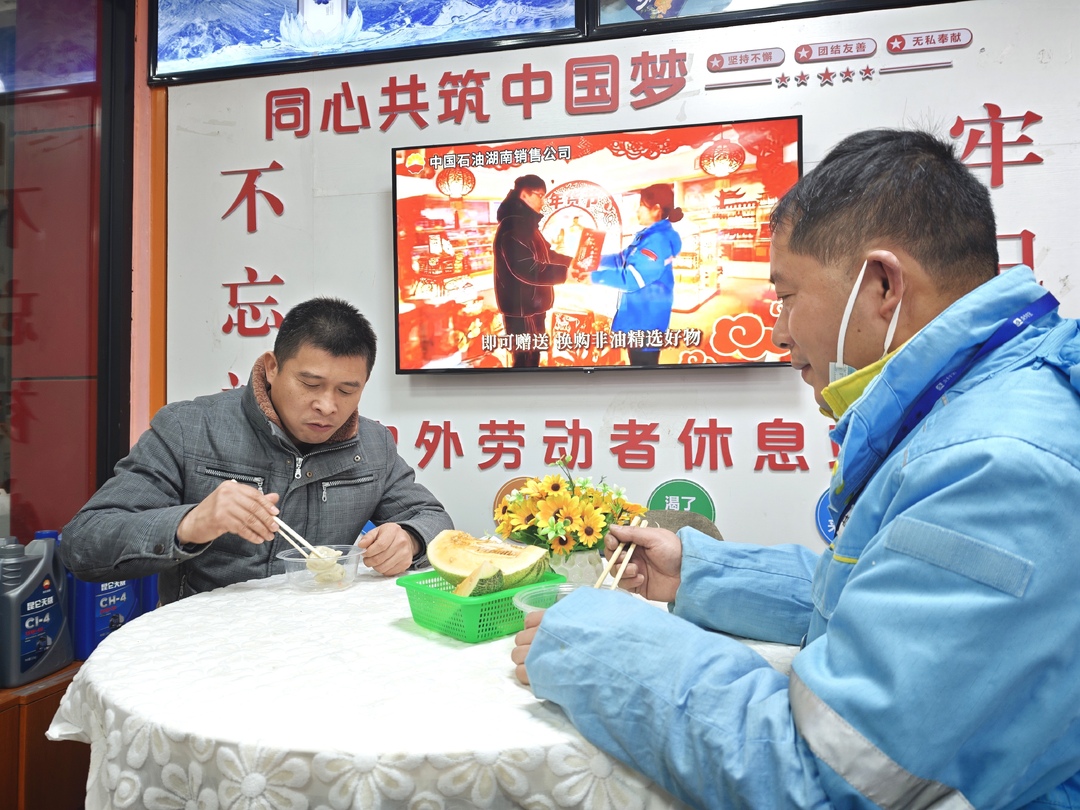 春节期间,加油站作为返乡车流的汇聚点,迎来一年中最忙碌的时刻。中国石油湖南销售公司库站一线员工坚守岗位、默默付出,守护着每一段奔赴团圆的旅程。今年春节,坚守在加油站一线的员工,热情邀请货车司机、环卫工人等走进“司机之家”,共享团年饭、共度新春佳节,让这个春节年味更浓、归途更暖。