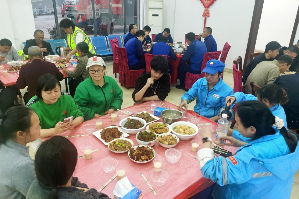 每年除夕前,她都亲自逛市场、挑食材、定菜谱,从胡葱炒腊肉、腊猪脚到苗家蛋卷,每一道菜都饱含心意。“以前过年总盼着回村,现在在站上吃年夜饭,跟家里一样暖。”员工腾利蓉的话语里,满是安心与感动。