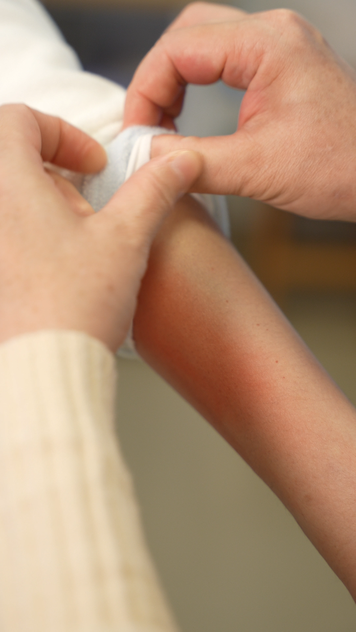 用无菌纱布、干净的保鲜膜或清洁干燥的毛巾轻轻覆盖创面,减少细菌感染风险,同时保护创面免受摩擦,切勿用卫生纸、湿巾直接按压创面。