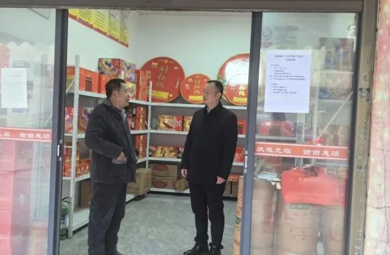 2月16日,新邵县太芝庙镇工作人员对辖区烟花爆竹零售店和可能非法经营、储存的重点场所、部位进行检查。