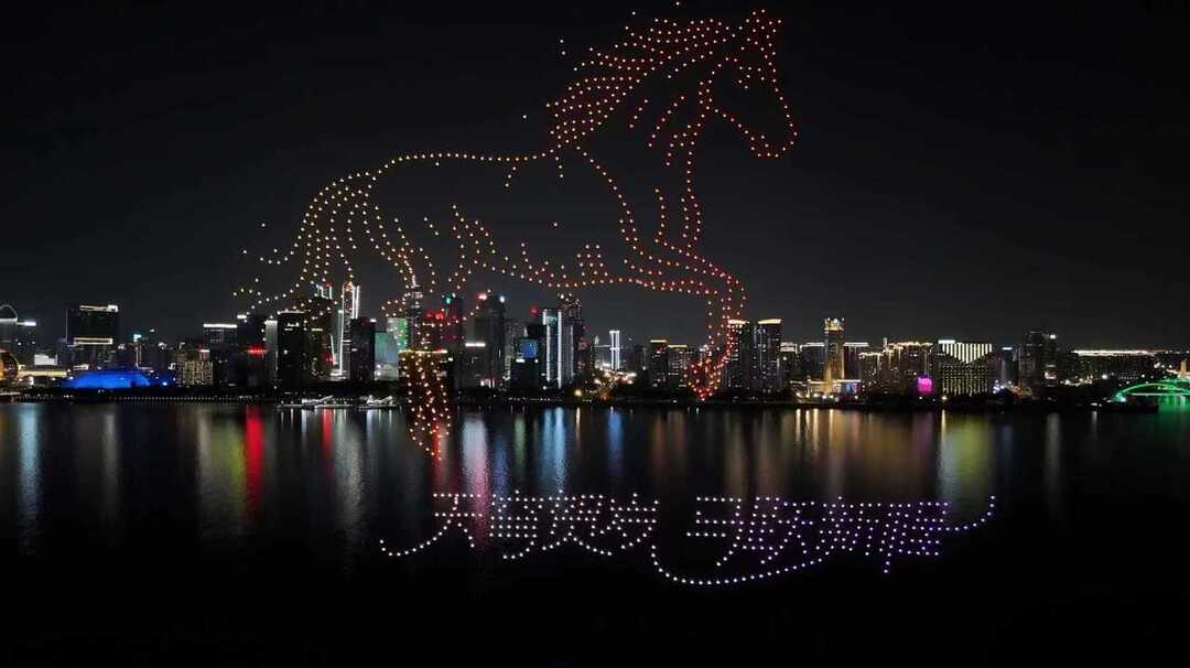 初五晚7点整,伴随着欢乐喜庆的乐曲和螺旋桨转动的蜂鸣,钱塘江夜空中的点点“星光”汇聚成一匹骏马呈现在观众眼前,霎时引来一阵欢呼。“我是带着家人来江边看灯光秀的,还偶遇了这么精彩的无人机表演!”来自河南的游客王先生一边用手机拍摄一边说,“从阿里巴巴到‘六小龙’,浙江在我印象中一直是勇于创新的形象,你看,就连贺岁都满满科技范。”