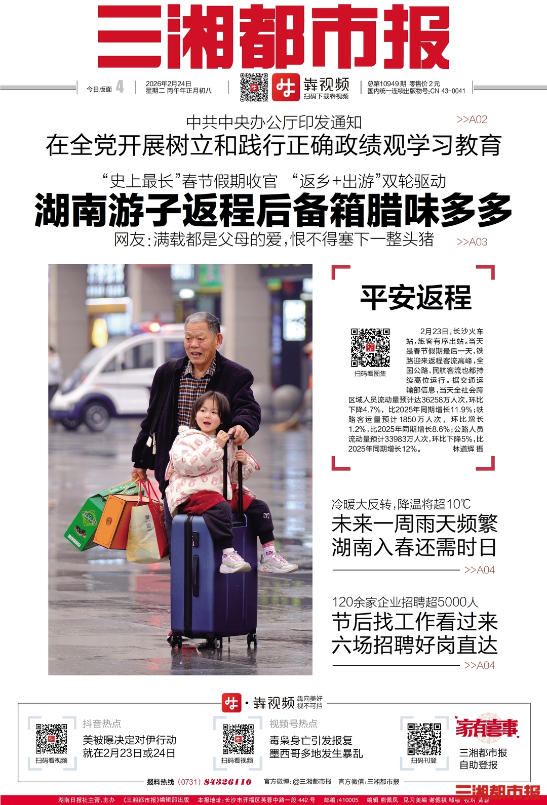 2月24日读报| 晒返程后备箱,父母的爱总是“腊”样浓