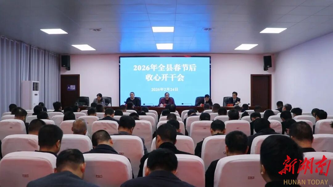 湖南日报·新湖南客户端2月25日讯(通讯员 王艺淞)2月24日,2026年全县春节后收心开干会召开,蓝山县委书记邓群出席并讲话,县委副书记、县长曾艺主持,张恒、曹晓春、刘素萍等在家县级领导参加。