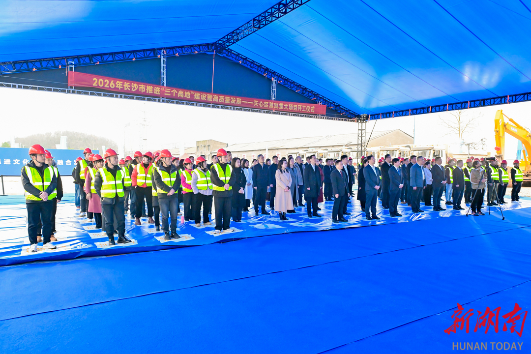 湖南日报·新湖南客户端2月25日讯(记者 彭诗思)春潮澎湃处,奋楫争先时。2月25日,2026年长沙市推进“三个高地”建设暨高质量发展重大项目开工(天心会场)活动在音视频装备制造基地(数智健康产业创新基地A区)举办,总投资120亿元的15个重大项目集中破土。