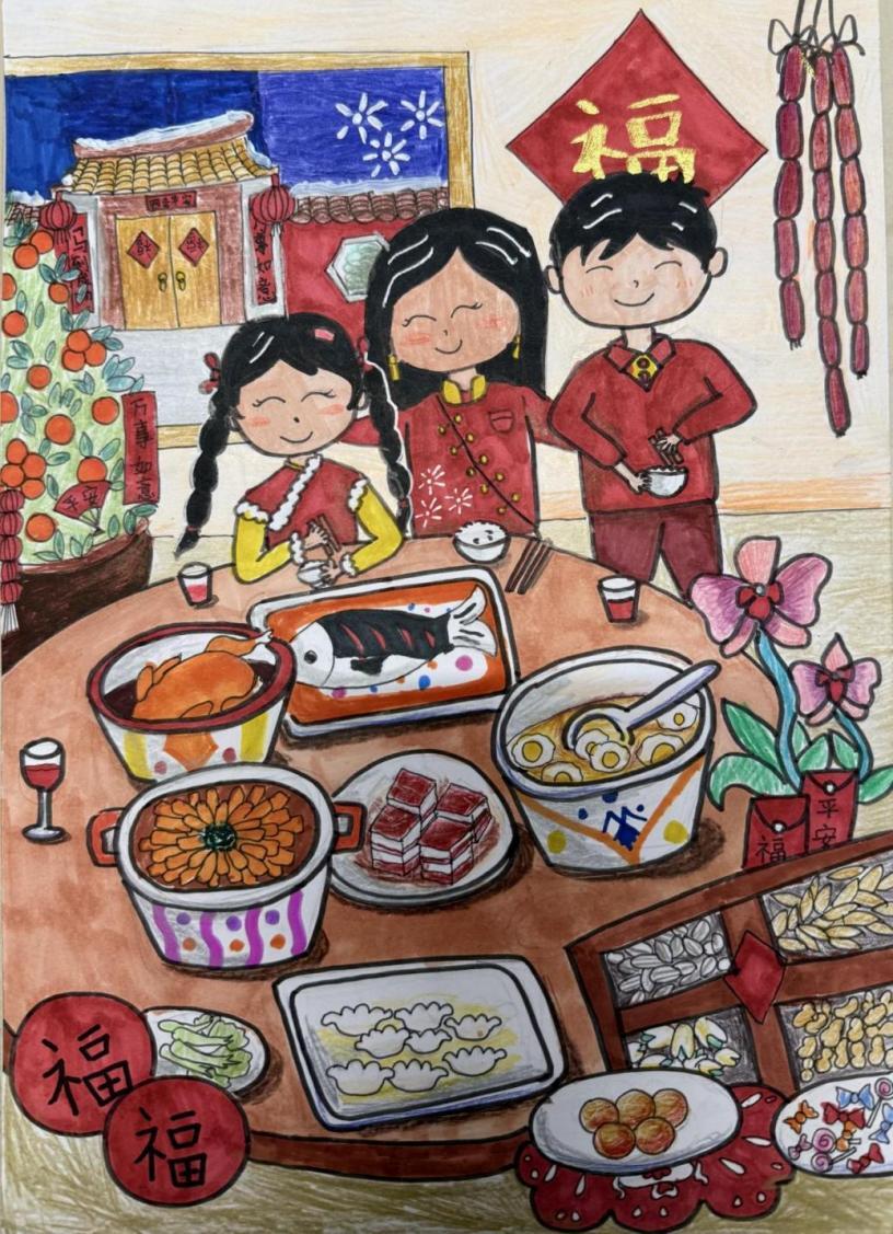 一碗炒粉藏着家乡的烟火气,一盘腊肉凝聚着岁月的醇香。在湖南日报全媒小记者“‘童’话家乡,‘味’来可期”主题征稿活动中,我们收到了一大波充满想象力的绘画作品。这群“小记者”不仅会写,更是隐藏的“小画家”。他们用绚丽的色彩、稚嫩而真诚的线条,描绘出对新年的期待、对家乡美食的热爱。让我们放下文字,用眼睛去“品尝”孩子们带来的视觉大餐,感受他们画笔下那热气腾腾的中国年。