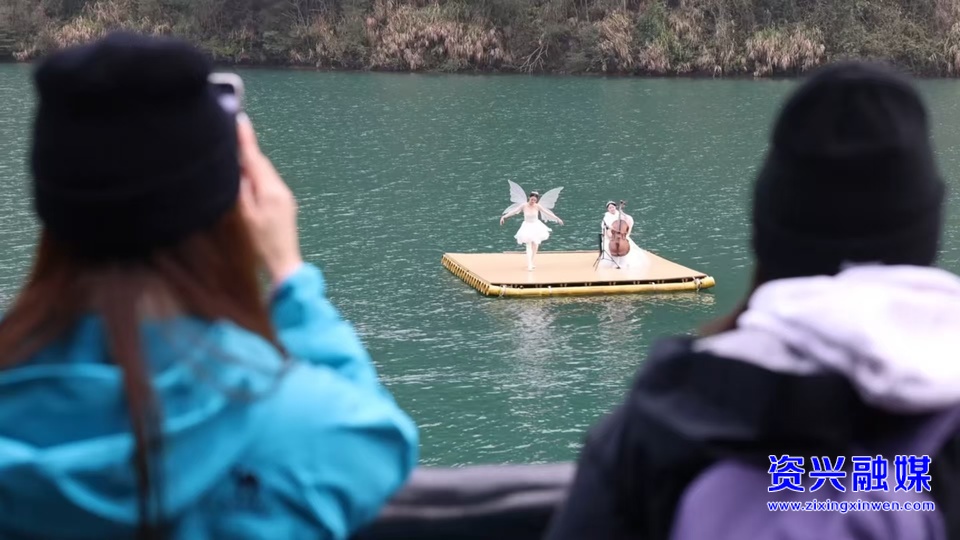 今年春节,资兴的山水不再只是静态的风景,更成为了流动的舞台。作为核心引擎的东江湖景区,累计接待游客13.85万人次,同比增长10.2%,旅游综合收入达2703.06万元。景区内,传统与时尚交织,文化与科技碰撞:非遗绝技“花上高杆舞”引来阵阵喝彩,AI智能神兽、“古代卖货郎”与游客幽默互动,大提琴的悠扬旋律与水上芭蕾的灵动身姿在湖面上演“快闪”;以雾漫小东江为主题开发的古风团扇、冰箱贴等文创产品走俏,让游客把资兴记忆带回家;文化集市里,非遗体验、投壶竞技、财神拜年等活动人气高涨;在东江湾花月夜,水上飞人划破夜空,与璀璨的灯光秀交相辉映,将夜游经济推向高潮。整个景区从早到晚,精彩不断档,年味不散场。……一系列沉浸式、互动式体验,让游客在山水之间新鲜感、体验感拉满。