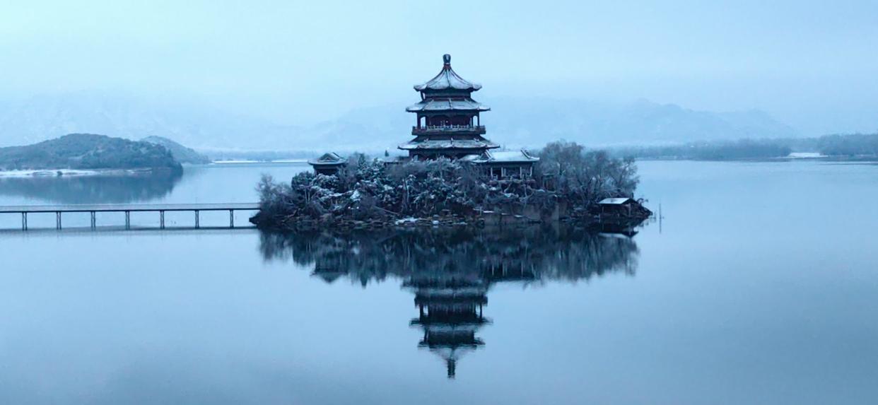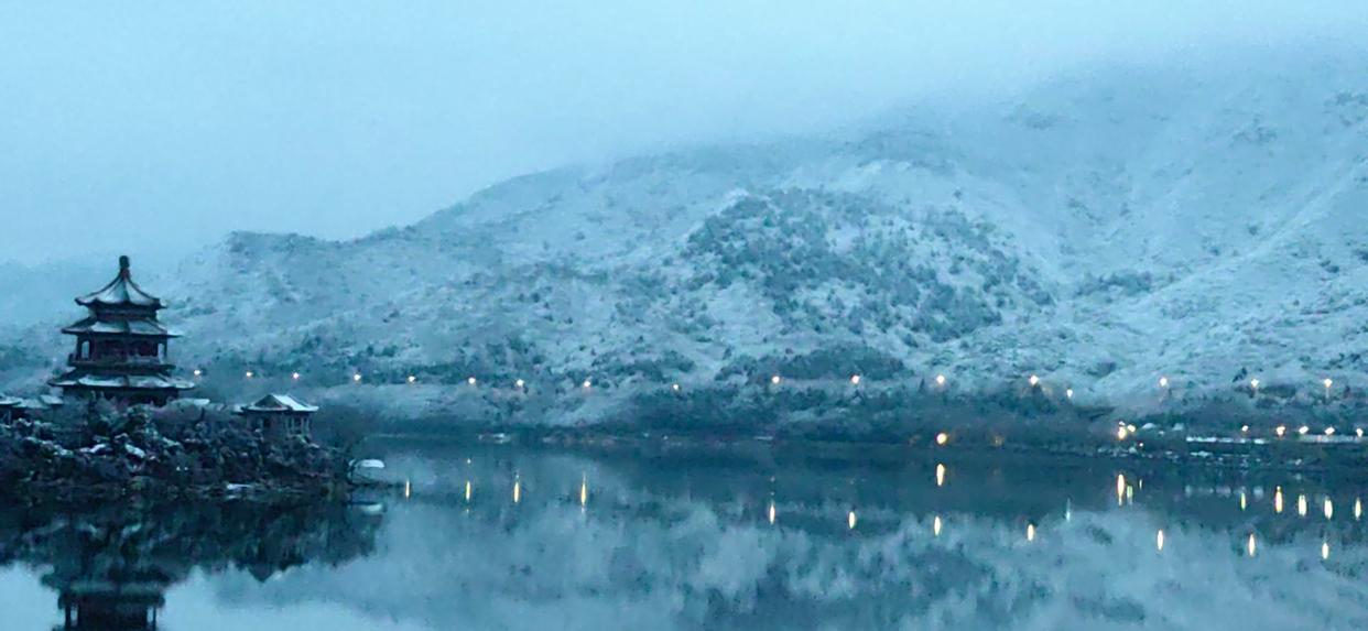 雪落青山,晨光初醒!十三陵水库雪景,有种别样的美