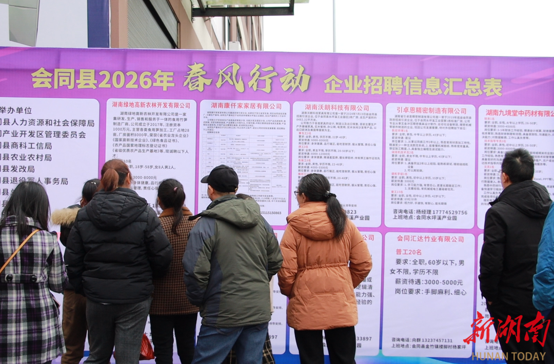 湖南日报·新湖南客户端2月27日讯(通讯员 李 洁)新春开局干劲足,就业春风暖人心。2月26日,会同县人社局抢抓春节后求职招聘黄金期,在县产业开发区连山工业园和水坪溪工业园同步举办2026年“春风行动”现场招聘会,全力保障企业复工复产,吸引全县18个乡镇求职者踊跃参与,奋力实现新年就业工作“开门红”。