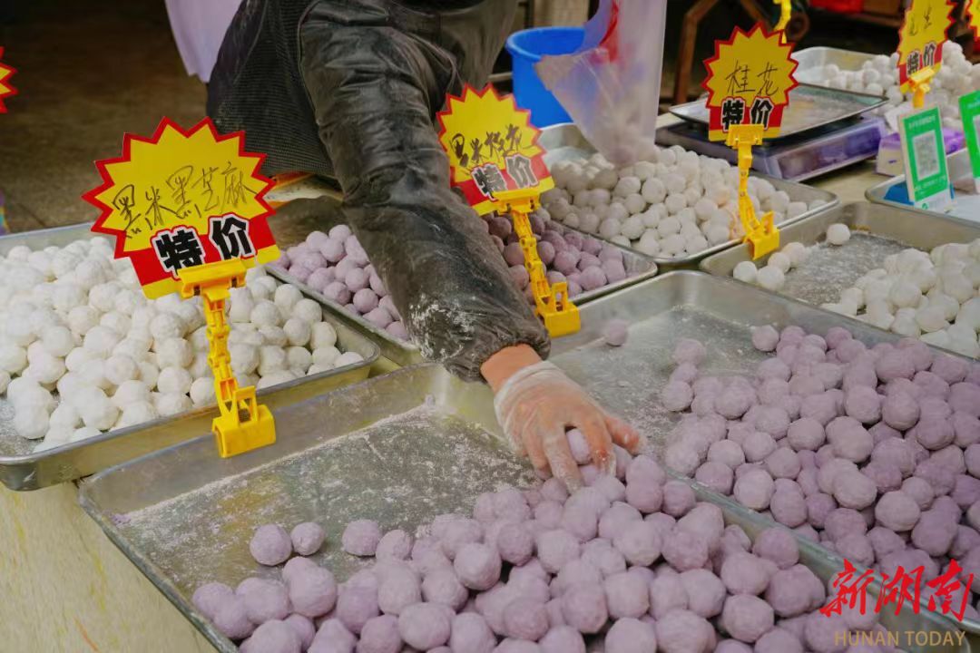 至若湘潭闹岁,别有风致。糯淘云母之晶,三浸三磨见巧;馅裹崖蜜之髓,五仁八宝生香。君山茶雾沁皮,银针粉坠玲珑雪;窑埠糖油慢煨,蜜汁光浮琥珀膏。正合"星沉乌臼,珠跃金波"之妙境也。