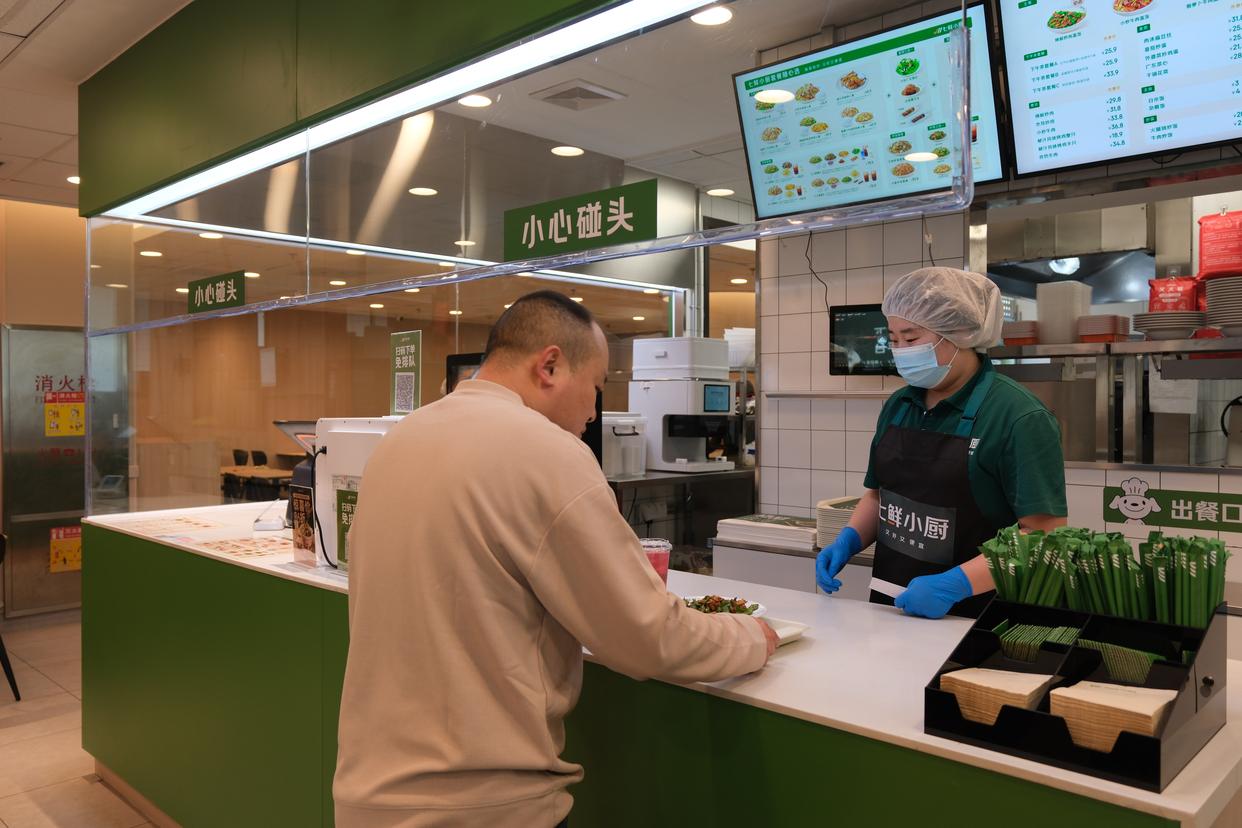 “机器翻炒完成后,我们负责盛盘、出餐,整个流程非常顺畅。”门店店长闫海山介绍,目前店内六七名员工,就能支撑每天数百个订单的出餐量。