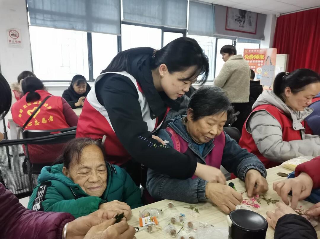 活动现场暖意融融,处处洋溢着喜庆热闹的节日气息。手工香薰蜡片制作区人气十足,指导老师精心准备了大豆蜡、天然精油、干花、模具等材料,耐心细致地讲解制作流程。面对行动不便、视力受限的残疾居民,“塔锋力量”志愿者一对一协助操作,从融化蜡液、调配香氛,到摆放干花、定型脱模,手把手陪伴居民完成作品。大家相互欣赏、拍照分享,欢声笑语不断,在动手实践中感受传统民俗与手工创作的乐趣。