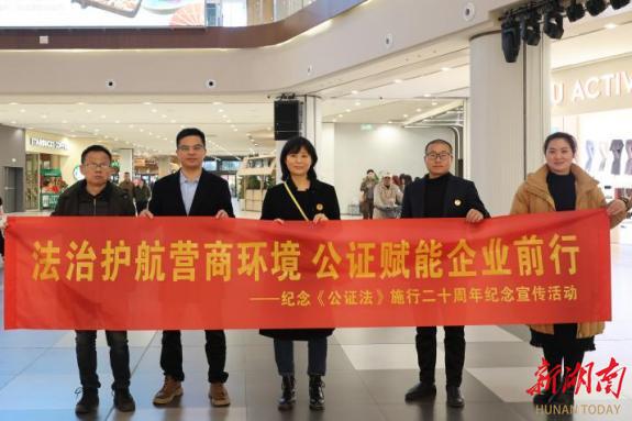 湖南日报·新湖南客户端2月28日讯(通讯员 唐洁颖)2026年3月1日是《中华人民共和国公证法》施行20周年的纪念日,湘江公证处近日在望城区永旺梦乐城开展纪念宣传活动,以实际行动践行“公证为民”理念,为优化营商环境、促进企业健康发展贡献力量。