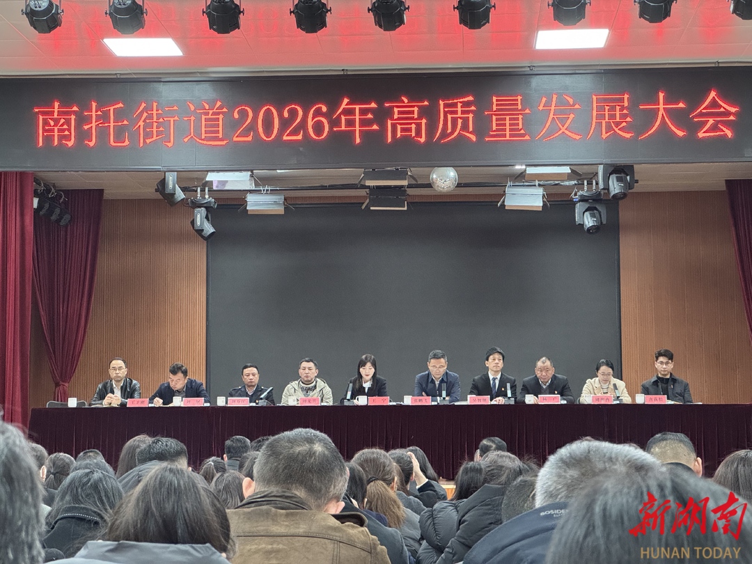 春潮涌动马蹄疾,2月28日上午长沙市天心区南托街道2026年高质量发展大会顺利召开,一张立于南托实际、布局全年发展的“答卷”铿锵起笔。会议深入贯彻落实全区高质量发展大会精神,传达学习天心区区委书记、区长周志军在全区大会上的讲话,紧扣“天心十问”,结合南托实际逐项对标、逐一破题,部署南托街道新一年发展任务,动员全街上下以“开年即冲刺”的姿态,在融城发展中勇挑重担、争当示范。