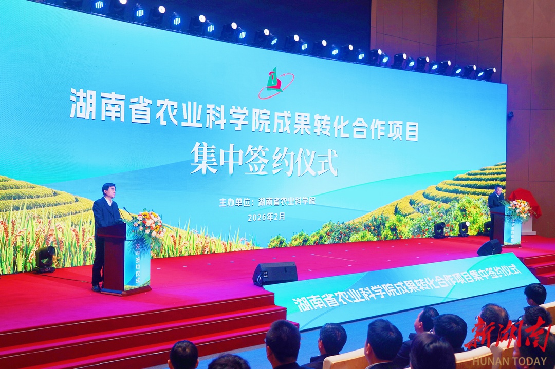 湖南日报2月28日讯(全媒体记者 胡盼盼 通讯员 刘维帅)今天,湖南省农科院举行2026年科技成果转化合作项目集中签约仪式,30个科研成果卖出了1.125亿元的高价,其中500万元以上的“大单子”就有4个。