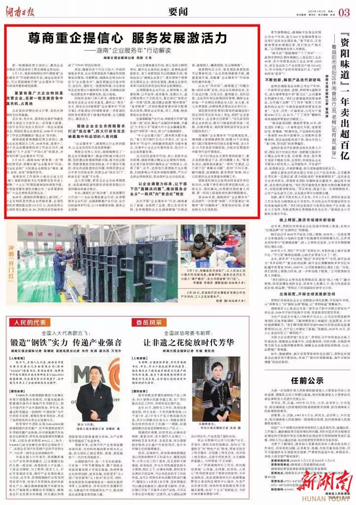 然而,随着经济下行压力加大、外部环境复杂多变,企业发展面临的不确定性和困难也在增加。毛朝晖说,湖南决定将2026年定为“企业服务年”,就是要通过打造市场化、法治化、国际化一流营商环境,为全省各类企业发展壮大提供坚实支撑,为湖南在新一轮发展竞争中赢得先机、抢占高地。