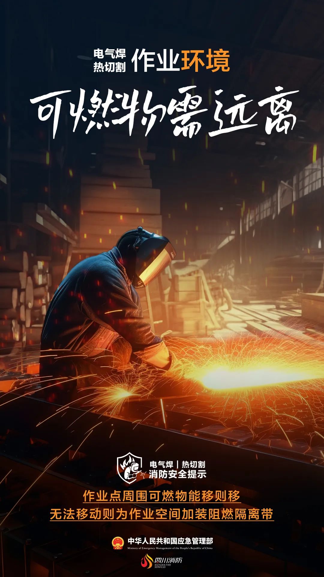 1.要有安全管理人员在现场守护,在施工同时实施防灭火措施。