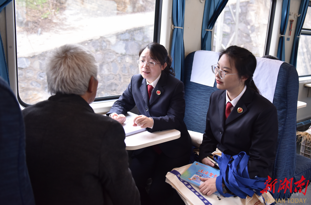 这趟穿行于湘西山区的慢火车,是沿线群众赶集、返乡、走亲访友的重要交通工具。车厢内,不仅有背着竹篓的老乡,还有一支由检察官和银行工作人员组成的“普法服务队”。他们走进车厢、蹲点站点,将反诈知识送到群众身边,把法治服务送到百姓心坎上。
