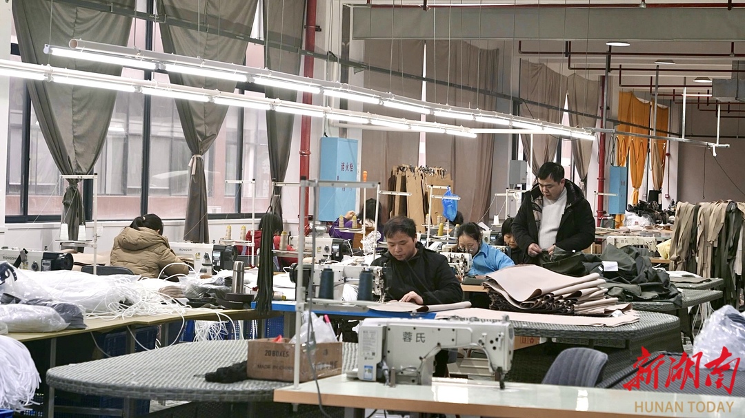 在湖南沃朗科技有限公司的塑编家具生产车间,缝布料、粘海绵、绑塑编条等工序有序推进,工人们指尖翻飞、专注作业,一道道精细工序后,兼具实用性与美学价值的塑编椅子、茶几相继成型。企业坚持精工细作,产品款式新颖、做工扎实,凭借优良品质赢得市场认可,车间里员工全员到岗,正加紧赶制订单,全力满足市场需求。