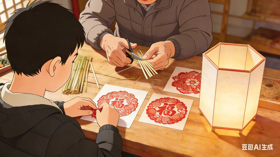 非遗传承人亲授湘中剪纸技法,亲子协作,裁竹篾、贴纹样,制作精美宫灯。