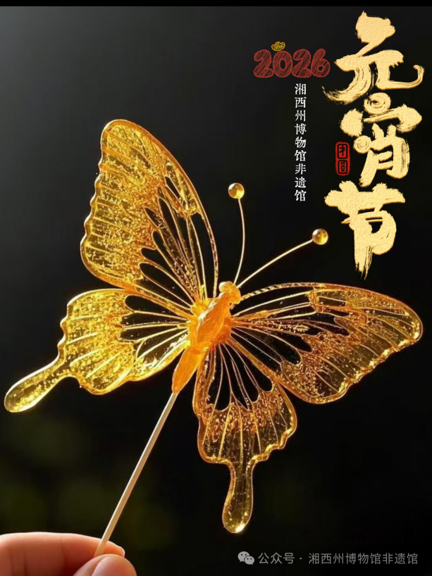 认识蝴蝶妈妈、牛龙纹、双鱼纹等湘西苗族经典纹样,亲手制作“蝴蝶妈妈”非遗糖画,把甜蜜与祝福带回家。