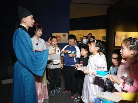 身着汉服漫步展厅,在七大文化地标打卡留影。