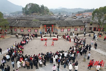 春节期间,张谷英村的当大门、天井院落、非遗体验中心等核心景观游人如织,各地游客纷至沓来,在古朴民居间感受传统春节的烟火气。相较于往年,今年的游客构成中,因电影《101金库》而来的打卡者成为明显增量。2月10日,这部由北京中视星缘文化传播有限公司与潇湘电影集团联合出品的反诈题材电影在张谷英村正式开机,相关消息经权威渠道发布与媒体矩阵全方位报道后,进一步释放了这座千年古村的文旅魅力,也吸引了不少影迷与游客慕名前来。