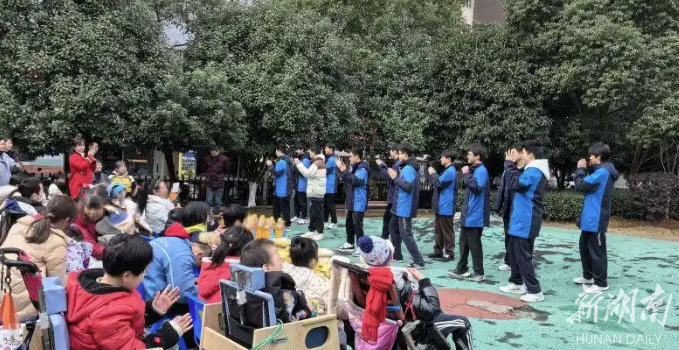 寒冬虽冷,人心向暖。长沙市周南中学的同学们走进脑瘫儿童群体,送去物资,也送去陪伴。