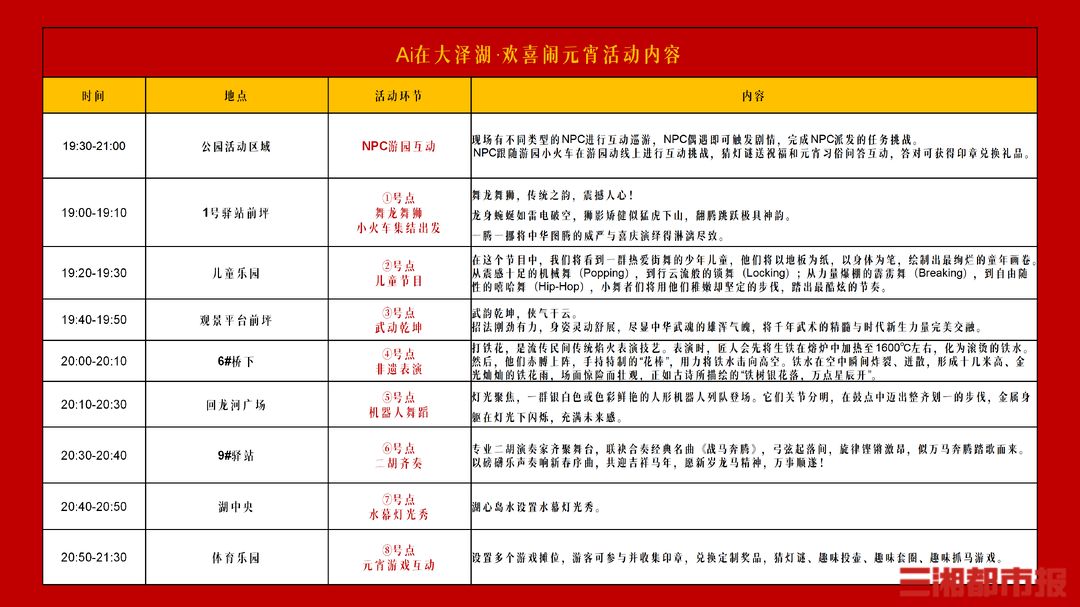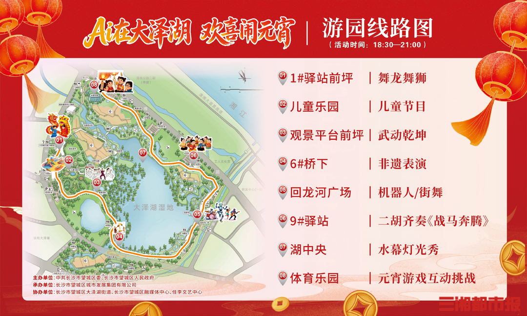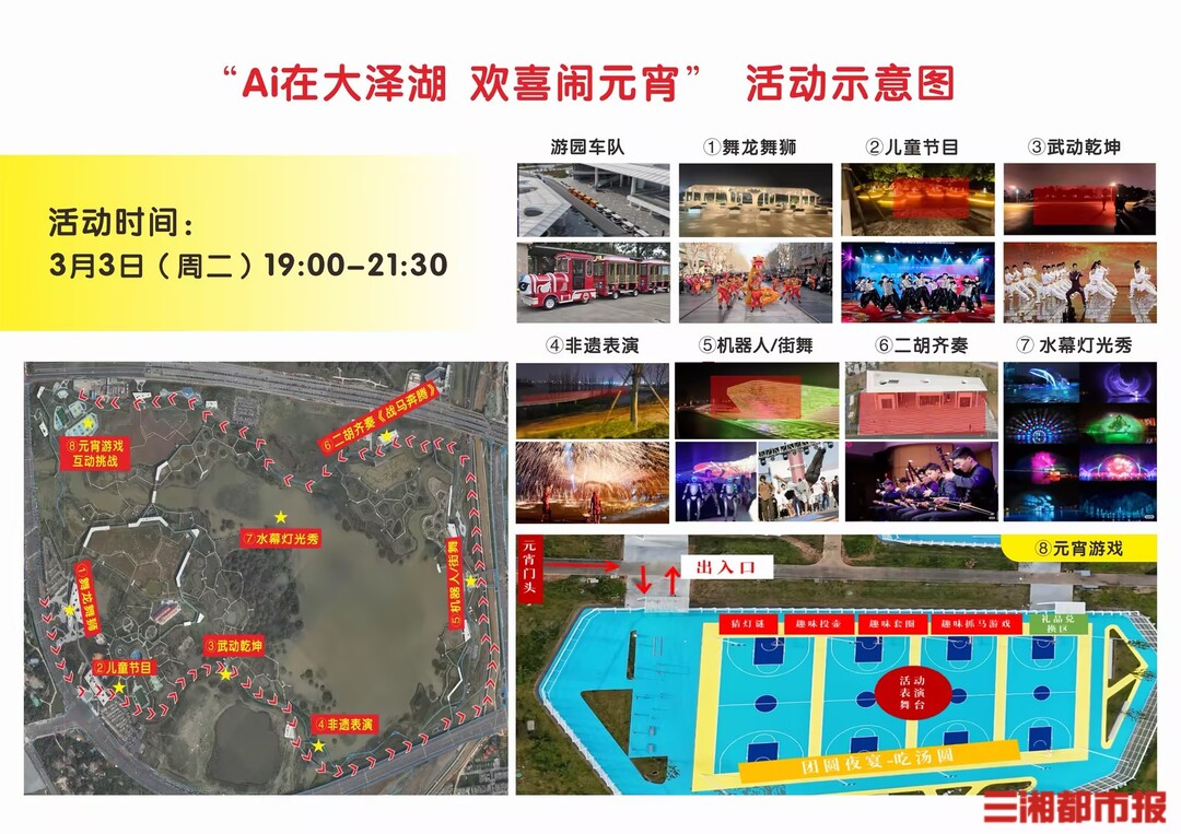 3月3日(元宵节)19时至21时30分,不妨走进大泽湖近自然湿地公园,在灯光、艺术与互动中共赴一场充满烟火气与幸福感的元宵之约。
