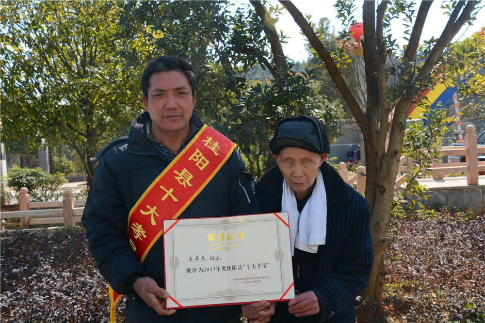 37年,寒来暑往,一万多个日日夜夜。王石文用一颗赤子之心,见证了中华文明血脉相承的道义,谱写了“百善孝为先”的华美乐章。他先后荣获“桂阳县十大孝星”“湖南好人”等称号,成为远近闻名的“好男人”。