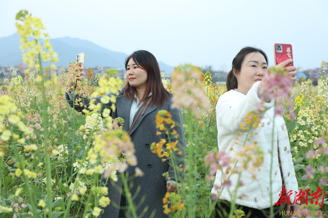 3月7日,永州市蓝山县塔峰镇竹市村,300余亩七彩油菜花进入最佳观赏期。玫瑰红、桃红、粉橙、白色等多种颜色相互交织、美不胜收,与田园、村落、青山相映成趣,构成一幅绚丽的春日画卷。该村成为市民游客踏青赏花打卡的好去处。(湖南日报全媒体记者 严万达 通讯员 刘文斌 谢琛 李秋妃)