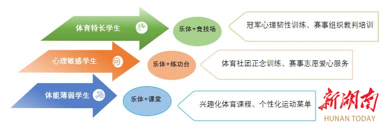 针对体育特长、心理敏感、体能薄弱三类学生,量身打造“乐体+竞赛场”“乐体+练功台”“乐体+课堂”三大专属平台,推出冠军心理韧性训练、正念运动、兴趣化体育课程等个性化“运动菜单”,让体育服务从“大水漫灌”变成“精准滴灌”,真正做到想学生所想、解学生所忧。